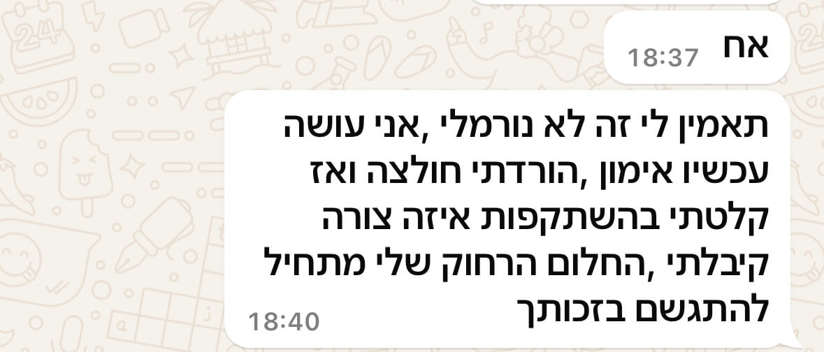 הבנתי דבר אחד, אם אמשיך להישאר במצב הזה? זה לא רק כמה חולצות שכבר לא עולות עליי… זה הבטחון העצמי והמצב הנפשי שמתחיל להתערר!